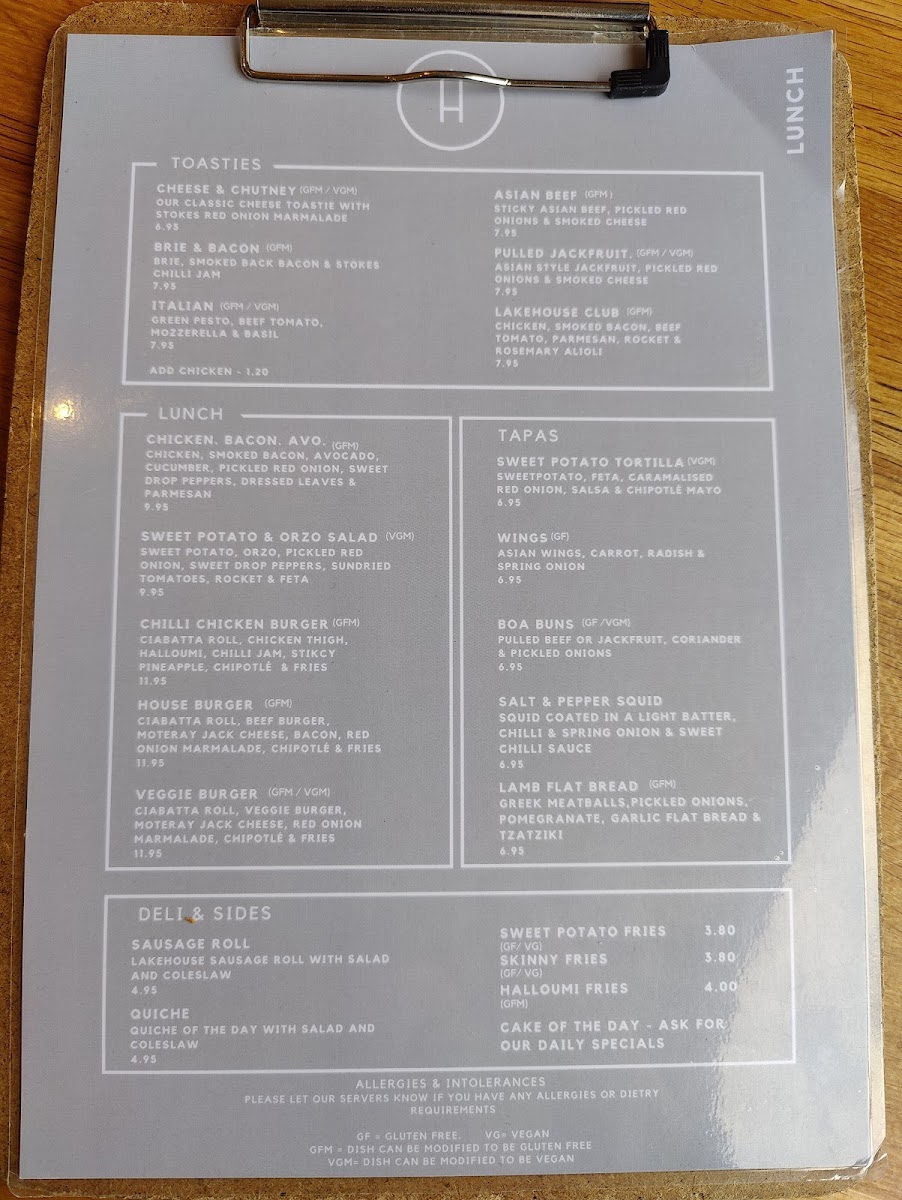 The Lakehouse Cafe Menu features a mix of classic cafe staples and inventive dishes. Start your day with a hearty breakfast, such as their full English breakfast, which is cooked to perfection with crispy bacon, sausages, eggs, and freshly baked bread. If you're in the mood for something lighter, the granola with yogurt and fruit provides a refreshing option. For lunch, the cafe excels with a range of sandwiches and salads, with the smoked salmon bagel being a standout for its rich flavor and quality ingredients. The cafe also offers some vegan-friendly choices, ensuring that every guest feels catered for.